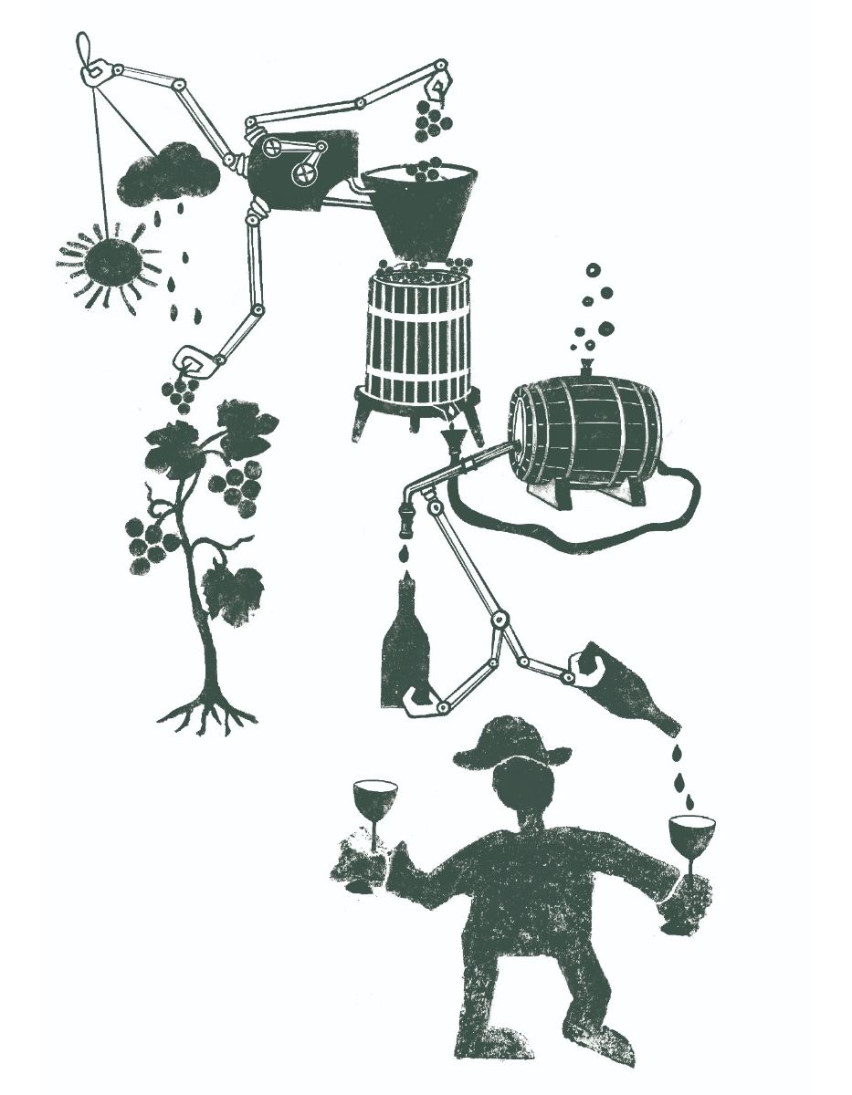 und das Fließschema unserer Weinbereitung auf dem Rücken,