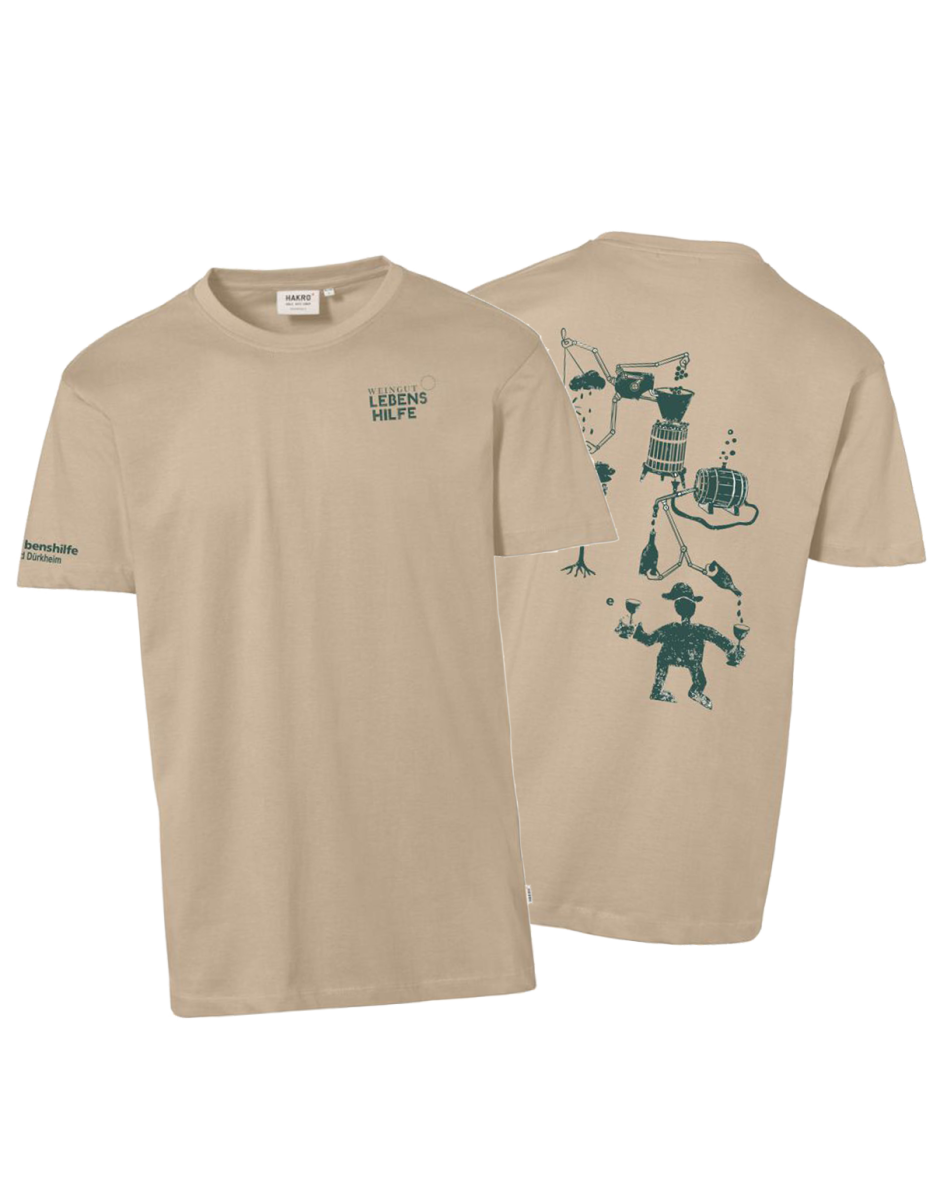-"Weingut Lebenshilfe"-Aufdruck auf der Brust,